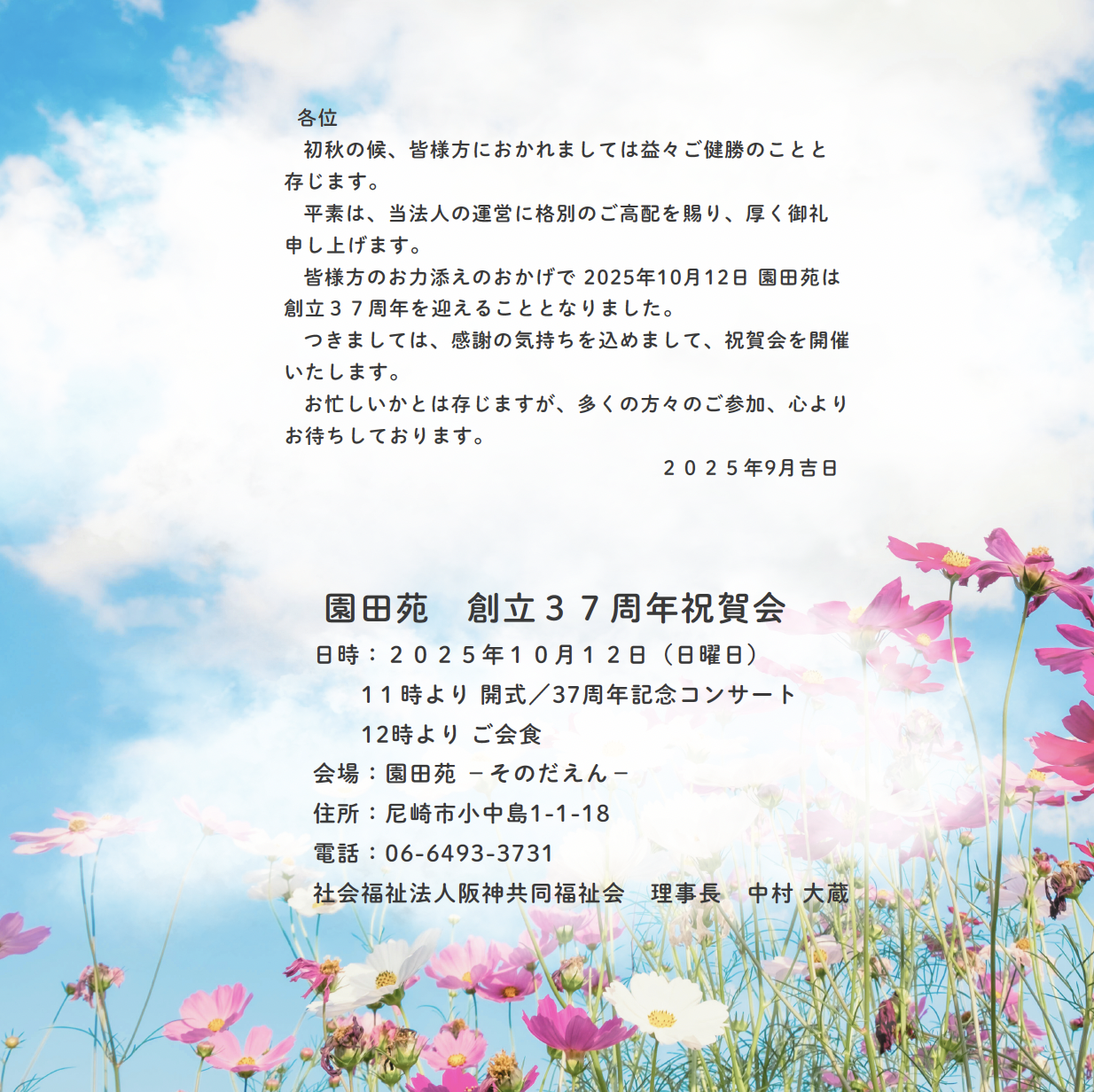 園田苑にて創立37周年祝賀会を開催致します。